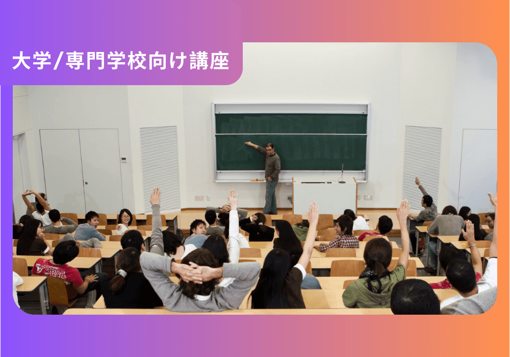 中学生講座は初心者でもわかりやすいデータの扱い方から、高校生・大学生に向けてはよりビジネス現場を意識した実践的な内容をお届けします。